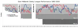 The fixture between Nottingham Forest and Leicester City is a football rivalry played between the two East Midlands clubs, often referred to as an East Midlands derby.[1][2] There have been a total of 104 meetings dating back to 1901.[3]