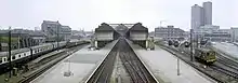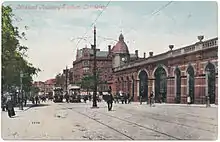 The first station on the site opened on 5 May 1840. It was originally known simply as Leicester, becoming Leicester Campbell Street on 1 June 1867, and Leicester London Road from 12 June 1892.[1] This was replaced in 1894 by a new station, also called Leicester London Road. Following the closure of Central on 5 May 1969, this station was renamed Leicester.[1] Besides London Road and Central, the city of Leicester was served by Belgrave Road, Humberstone Road and West Bridge railway stations.