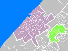 Leidschenveen-Ypenburg (Dutch pronunciation: [ˈlɛi̯tsə(n)ˌveːn ˈipənˌbʏrx]) is a Vinex-location and district of The Hague, located in the southeast. It is geographically connected to the main body of the city by only a narrow corridor. It consists of four quarters: Hoornwijk and Ypenburg on the southwest of the A12 motorway and parallel railway to Utrecht, and Forepark and Leidschenveen on the northeast.