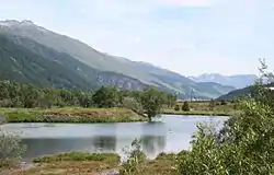 Lej da Gravatscha is an artificial lake next to the Inn River near Bever in the Upper Engadin, Grisons, Switzerland.
