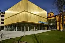 The city of Munich acquired the building in 1924 and opened a museum there in 1929. The latest wing was closed to the public in 2009 to allow the expansion and restoration of the Lenbachhaus by Norman Foster; the 1972 extension was demolished to make way for the new building. The museum reopened in May 2013. The architect placed the new main entrance on Museumsplatz in front of the Propylaea. The new facade, clad in metal tubes made of an alloy of copper and aluminum, will weather with time.[1]