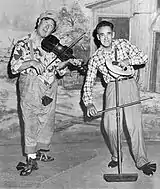 Aleshire first teamed up with his boyhood friend from Springfield, Floyd Rutledge, in the early 1920s. They developed a hillbilly musical comedy routine, playing traditional as well their homemade instruments which included cowbells strapped to their shoes. The pair toured with the Orpheum Circuit and played at the Palace Theatre in New York City.[2] Aleshire also worked the Bert Levy West Coast vaudeville circuit. In 1928, they joined The Weaver Brothers and Elviry act, based in Springfield, and eventually became known as Lennie and Goo Goo. Aleshire served as straight man for Rutledge's slow-witted Goo Goo.