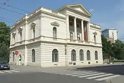 In 1881, Janáček founded and was appointed director of the organ school, and held this post until 1919, when the school became the Brno Conservatory.[8] In the mid-1880s, Janáček began composing more systematically. Among other works, he created the Four male-voice choruses (1886), dedicated to Antonín Dvořák, and his first opera, Šárka (1887–88).[23] During this period he began to collect and study folk music, songs and dances. In the early months of 1887, he sharply criticized the comic opera The Bridegrooms, by Czech composer Karel Kovařovic, in a Hudební listy journal review: "Which melody stuck in your mind? Which motif? Is this dramatic opera? No, I would write on the poster: 'Comedy performed together with music', since the music and the libretto aren't connected to each other".[24] Janáček's review apparently led to mutual dislike and later professional difficulties when Kovařovic, as director of the National Theatre in Prague, refused to stage Janáček's opera Jenůfa.[25][26]