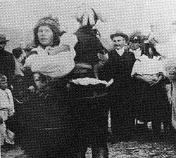 Janáček came from a region characterized by its deeply rooted folk culture, which he explored as a young student under Pavel Křížkovský.[70] His meeting with the folklorist and dialectologist František Bartoš (1837–1906) was decisive in his own development as a folklorist and composer, and led to their collaborative and systematic collections of folk songs.[70] Janáček became an important collector in his own right, especially of Lachian, Moravian Slovakian, Moravian Wallachian and Slovakian songs. From 1879, his collections included transcribed speech intonations.[71] He was one of the organizers of the Czech-Slavic Folklore Exhibition, an important event in Czech culture at the end of 19th century. From 1905 he was President of the newly instituted Working Committee for Czech National Folksong in Moravia and Silesia, a branch of the Austrian institute Das Volkslied in Österreich (Folksong in Austria), which was established in 1902 by the Viennese publishing house Universal Edition. Janáček was a pioneer and propagator of ethnographic photography in Moravia and Silesia.[72] In October 1909 he acquired an Edison phonograph and became one of the first to use phonographic recording as a folklore research tool. Several of these recording sessions have been preserved, and were reissued in 1998.[73]