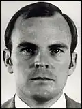Peltier's trial was held in Fargo, North Dakota, where a jury convicted Peltier of the murders of Coler and Williams.[30] Unlike the testimony in the trial for Butler and Robideau, the jury was informed that the two FBI agents were killed by close-range shots to their heads, when they were already defenseless due to previous gunshot wounds.[31] Consequently, Peltier could not submit a self-defense testimony that may have resulted in an acquittal.[32] The jury was also shown autopsy and crime scene photographs of the two agents, which had not been shown to the jury at Cedar Rapids.[31] In April 1977, Peltier was convicted and sentenced to two consecutive life sentences.[33]