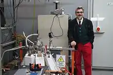 When he arrived at the Comisión Chilena de Energía Nuclear, he started to work in plasmas driven by small transient electrical discharges and small pulsed power devices: z-pinch, capillary discharges and plasma focus.[4] His work has contributed to understand that it is possible to scale the plasma focus in a wide range of energies and sizes, keeping the same value of ion density, magnetic field, plasma sheath velocity, Alfvén speed and the quantity of energy per particle.[2] Therefore, fusion reactions are possible to be obtained in ultra-miniaturized devices (driven by generators of 0.1J for example),[5] as well as they are obtained in bigger devices (driven by generators of 1MJ). However, the stability of the plasma pinch highly depends on the size and energy of the device.[2] A rich plasma phenomenology it has been observed in the table-top plasma focus devices developed by Soto´s group: filamentary structures,[6] toroidal singularities,[7] plasma bursts[8] and plasma jets generations.[9] In addition, possible applications are explored using these kind of small plasma devices: development of portable generator as non-radioactive sources of neutrons and x-rays for field applications,[10][11] pulsed radiation applied to biological studies, plasma focus as neutron source for nuclear fusion-fission hybrid reactors,[12] and the use of plasma focus devices as plasma accelerators for studies of materials under intense fusion-relevant pulses.[13]