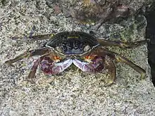 Leptograpsus variegatus, known as the purple rock crab, is a marine large-eyed crab of the family Grapsidae, found in southern subtropical Indo-Pacific Oceans.[1] It grows to around 50 millimetres (2.0 in) shell width.[1] It is the only species in the genus Leptograpsus.[2]