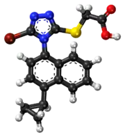 Lesinurad (brand name Zurampic) is a urate transporter inhibitor for treating high blood uric acid levels associated with gout.[1] It is only recommended together with either allopurinol or febuxostat when these medications are not sufficient.[2]