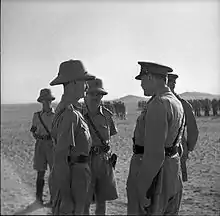 In Egypt, where the 2nd New Zealand Division was being rebuilt after the losses of Greece and Crete, Andrew and Hargest gave evidence in an inquiry on the conduct of the fighting on Crete. Officially, 5th Brigade was held blameless.[24] Andrew remained as commander of 22nd Battalion during the early phases of the North African Campaign.[8] At one point during the efforts to lift the Siege of Tobruk, his battalion was surrounded at Menastir and fought off elements of the 21st Panzer Division.[25] His leadership during this time was later recognised with a Mention in Despatches.[2]