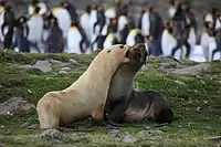 - Peters, Lucy; Humble, Emily; Kröcker, Nicole; Fuchs, Birgit; Forcada, Jaume; Hoffman, Joseph I. (2016-07-22). "Born blonde: a recessive loss‐of‐function mutation in the melanocortin 1 receptor is associated with cream coat coloration in Antarctic fur seals". Ecology and Evolution. 6 (16): 5705–5717. doi:10.1002/ece3.2290. ISSN 2045-7758. PMC 4983585. PMID 27547348.