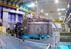 A levitated dipole is a type of nuclear fusion reactor design using a superconducting torus which is magnetically levitated inside the reactor chamber. The name refers to the magnetic dipole that forms within the reaction chamber, similar to Earth's or Jupiter's magnetospheres. It is believed that such an apparatus could contain plasma more efficiently than other fusion reactor designs.[1] The concept of the levitated dipole as a fusion reactor was first theorized by Akira Hasegawa in 1987.[2]