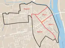 The street names that run east and west are a local urban mystery. St. George, St. Catherine, and St. Louis etc. appear to be named for saints. While Lutherans, such as Derr was, recognize historic catholic saints, the street names are more likely named for Derr's family members (whose names coincided with saints). Those streets are consecutively parallel, and emanate from what was then Derr's home, and the location of the first available lot sold (which were both situated on, what is now, Mill Street). George was Ludwig's son, his wife Catherine and Ludwig/Lewis (sic) himself. The other original street names that still exist are St. John, St. Mary and St. Anthony, which may be the names of other children from families with whom Derr's own family were friends. However, there is an indication that Derr also had a daughter named Mary. Overall, however, the premise is further supported by the notion that the German word for street is Strasse (Straße, abbreviated St). At the time, street names were pronounced as Strasse Mary or Strasse George. Later, when signs were made to note the street names, the abbreviation for Strasse was allowed to remain, but the US/English abbreviation was redundantly added to the signs.