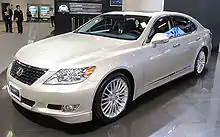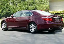 The Lexus LS (Japanese: レクサス・LS, Rekusasu LS) is a full-size luxury sedan (F-segment in Europe) serving as the flagship model of Lexus, the luxury division of Toyota. For the first four generations, all LS models featured V8 engines and were predominantly rear-wheel-drive. In the fourth generation, Lexus offered all-wheel-drive, hybrid, and long-wheelbase variants. The fifth generation changed to using a V6 engine with no V8 option, and only one length was offered.