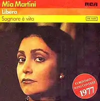 "Libera" (English translation: "Free") was the Italian entry in the Eurovision Song Contest 1977, performed in Italian by Mia Martini, at the time arguably Italy's most successful and celebrated female artist, having had a number of hits like "Padre davvero...", "Gesù è mio fratello", "Credo", "Piccolo uomo", "Donna sola", "Minuetto", "Il guerriero", "Inno", "Al mondo", "Donna con te", "L'amore è il mio orizzonte", "Che vuoi che sia...se t'ho aspettato tanto" on the Italian Hit Parades between the years 1971 and 1976, as well as taking part in the Sanremo Music Festival and the Festivalbar on several occasions.