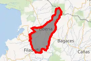 Liberia (Spanish pronunciation: [li.ˈβe.ɾja]) is a district and the largest city in the Guanacaste Province of Costa Rica, located 215 kilometres (134 mi) northwest of the national capital, San José, in the canton with the same name, of which it is the head city or capital.[1][2]