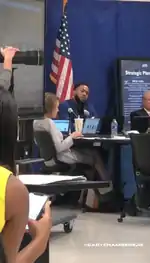 On June 18, 2020, the East Baton Rouge School Board held a meeting about the school's name. Connie Bernard, a board member who has been serving since 2010, defended the school's name, telling community members to “learn a little bit more about” Lee saying that "General Lee inherited a large plantation, and he was tasked with the job of doing something with those people who lived in bondage to that plantation – the slaves – and he freed them."[18][19] Community leader Gary Chambers Jr. photographed Bernard on her laptop shopping during the meeting, posting it on his Facebook before addressing the board.[20] The three minute video of Chambers criticizing Bernard went viral on social media, with LeBron James, Shannon Sharpe, and Ava DuVernay retweeting the video.[21][22][23][24][25][26] After the speech, Chambers uploaded a 2-minute video on Instagram explaining his perspective, calling for Bernard to resign, and containing a 20-second video of Bernard on her laptop.[27]