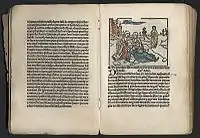 ![]() Lidwina's fall on the ice, Wood drawing from the 1498 edition of John Brugman's Vita of Lidwina | |