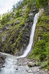 Liechtensteinklamm (Liechtenstein Gorge) is a particularly narrow gorge with walls up to 300m high, located in the Austrian Alps 50 km south of Salzburg. It is around 4 km long and named after Johann II of Liechtenstein who had the walkways installed in 1875.