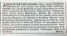 - Advertisement promoting "Life and Adventures of Jack Engle" by Walt Whitman in The New York Times, March 13, 1852.