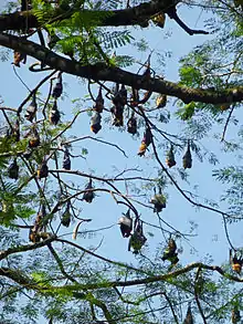 Newly created light gaps are avoided in a lot of situations by species that would normally replenish them through seed dispersal. However, the aid of the wind for seed dispersal in the light gap has a positive effect on plants, taking them further from the parent plant and decreasing predation.[11] Frugivores such as birds and bats find recently created gaps dangerous because they pose a hazard on their overall well-being. Birds find no place to perch, and bats are more susceptible to predators when they fly in this area. Large monkeys, toucans, and guans perch in the tops of the canopy, and therefore release their seeds under the canopy and as a result, the seeds do not get dispersed where most needed. Wind initiates seed movement into the canopy gap.[12] As the gap matures, it begins to grow trees that bear fruit, and growth of shrubs draw in more animals as they provide better protection from the open canopy above.