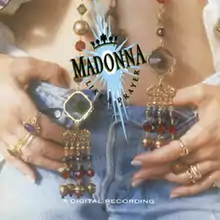 Recording artist Prince played the guitar on three songs from the album, "Like a Prayer", "Keep It Together", and "Act of Contrition", though he remained uncredited.[16] Prince and Madonna also worked together on the track "Love Song". The song was recorded at Prince's Studio on Paisley Park; "We were friends and talked about working together, so I went to Minneapolis to write some stuff with him, but the only thing I really dug was 'Love Song' [...] We ended up writing it long-distance, because I had to be in L.A. and he couldn't leave Minneapolis, and quite frankly I couldn't stand Minneapolis. When I went there, it was like 20 degrees below zero, and it was really desolate. I was miserable and I couldn't write or work under those circumstances", Madonna recalled.[8] For the artwork, the singer chose to work with photographer Herb Ritts. Initially, photos from the session with Ritts were also to be used for the lead single's packaging.[17] For the photoshoot, she decided to dye her blonde hair brown; she commented "I love blonde hair, but it really does something different to you. I feel more grounded when I have dark hair. It's unexplainable. I also feel more Italian when my hair is dark".[18] The cover art features a close-up of the singer's jean-clad midsection and bare midriff.[8][19] The cover has been seen as a reference to Sticky Fingers by The Rolling Stones.[8][20] The packaging on the first pressings of the CD, cassette, and LP were scented with patchouli oils to simulate church incense.[21] A publicist for Warner Bros. Records revealed this had been the singer's idea; "She wanted to create a flavor of the 60's and the church. She wanted to create a sensual feeling you could hear and smell".[21] Initial pressings also included an insert with safe sex guidelines and a warning about the dangers of AIDS, to which Madonna had lost friends.[22] Its inclusion was decided after Warner Bros. had agreed to release an album by stand-up comedian Sam Kinison the year before, although he had stated that AIDS came from gay men involved in bestiality.[23] Madonna dedicated the album to "My mother, who taught me how to pray".[24]