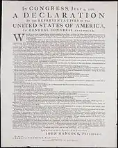 - One of 26 extant copies of the "First Printing of the Declaration of Independence" (also known as the "Dunlap Broadside") that was printed in Philadelphia on July 4, 1776