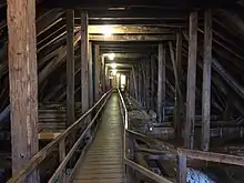 During the war, "priceless British treasures" were placed in a chamber sixty feet beneath the cathedral for safekeeping.[34] This did not include the cathedral's copy of the Magna Carta as it was on loan in the United States.[34]
