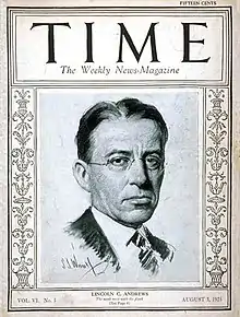 7. "Aut Vox, aut Vis". Time magazine. July 20, 1925. Retrieved 2009-08-18. For four years, the champion of the Prohibition Army has been a crusader Commissioner Roy Asa Haynes. But now an efficiency expert has arisen to fight with him for leadership. Lincoln C. Andrews, new Assistant Secretary of the Treasury in charge of Prohibition enforcement, looked upon the work of the crusader and found it ineffective. Mr. Andrews is a General (a title he acquired in military service) and promptly he set out to reorganize the Prohibition Army.