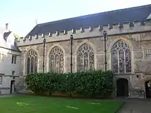 Despite insufficient endowment and trouble from the Wars of the Roses (for their charter was from the deposed Lancastrian), the College has survived and flourished thanks to the efforts of its fellows and the munificence of a second Bishop of Lincoln, Thomas Rotherham. Richard Fleming died in 1431, and the first rector, William Chamberleyn, in 1434, leaving the College with few buildings and little money. The second rector, John Beke, secured the College's safety by attracting donors. By 1436, the College had seven fellows. John Forest, Dean of Wells and a close friend of Beke's, donated such an amount that the College promised to recognise him as a co-founder; it did not keep this promise. His gifts saw the construction of a chapel, a library, hall and kitchen.[5] After a pointed sermon from the incumbent rector, Thomas Rotherham was compelled to give his support and effectively re-founded it in 1478, with a new charter from King Edward IV.[6]