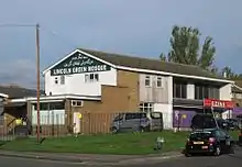 The Lincoln Green estate on the north side of Lincoln Green Road is mainly tower blocks and low-rise flats, which replaced the terraced houses known as New Town in about 1958, following the 1950s slum clearances.[2] On the south side of Lincoln Green Road is the Lincoln Green Shopping Centre, opened by celebrity Pat Phoenix (Elsie Tanner from Coronation Street)[2] and community buildings and low-rise housing.