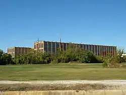 Production slowed during the Great Depression, and ground to a halt in 1934. From July 17 until September 22, 1934, a strike by the United Textile Workers of America brought violence to Huntsville.[3] Although business rebounded during World War II, no further expansions of the mill or village were made. In 1953, longtime superintendent Phillip W. Peeler retired, and the new management clashed often with the union. Another strike in 1955 turned violent, and lawsuits reached the Supreme Court, but were not heard before the mill closed.[2] The mill buildings were converted to offices, some of which were used by the space industry; the Apollo Lunar Roving Vehicle was designed in the mill by Brown Engineering. The oldest two mills, along Oakwood Avenue, were destroyed by fire in February 1980. The remaining Mill No. 3 has been renovated to house a variety of tenants, including offices, a microbrewery, loft apartments, and a school focusing on children with learning disabilities.[4] The remodeling focuses on using sustainable practices.[5]