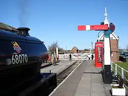 Out of the 18 levers, at the present time, only 4 are in use. However a future scheme is currently being worked on that will bring 8 levers into use. All the signals with the exception of the Down Starter (LU3) have SPT's (Signal Post Telephones) fitted to them. These allow both the driver and signalman to contact each other. Ludborough currently operates two Great Northern Railway somersault signals (LU3 down starter and LU14 Up Inner Home). These type of signals were used all over the East Lincolnshire Railway, and is appropriate for the railway's needs.