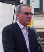 Simmons, the ostensible Party favorite, staked his campaign on the convention and said repeatedly he would not "force a primary" if he lost the convention.[87] However, when Simmons lost many of his pledged delegates to McMahon, his viability was doubted by the media and state GOP.[89][90][91] Pundits revealed that Simmons was under pressure to drop out and run for his former Congressional seat.[92] When Simmons was asked about the possibility,[93] he did not explicitly "rule out" a change in races.[94] Simmons was visibly frustrated by the negative media publicity he received as a result.[95] Simmons then claimed that he had more delegates than McMahon by a wide margin.[90] McMahon heavily outspent Simmons, maintaining a steady lead over both her rivals. Simmons could not fund TV ads after a drop in fundraising.[96] In the weeks prior to the convention, Simmons failed to regain in the polls.[97]