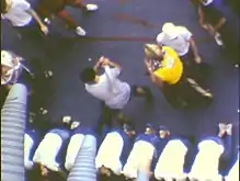 U.S. President Franklin D. Roosevelt described his crossing-the-line ceremony aboard the "Happy Ship" USS Indianapolis with his "Jolly Companions" in a letter to his wife Eleanor Roosevelt on 26 November 1936.[11] Later, during World War II, the frequency of the ceremony increased dramatically, especially in the United States Navy in the Pacific, where the service's fleet operations grew enormously to counter widely dispersed Japanese forces.[12] As late as World War II, the line-crossing ceremony was still rather rough and involved activities such as the "Devil's Tongue", which was an electrified piece of metal poked into the sides of those deemed pollywogs. Beatings were often still common, usually with wet firehoses, and several World War II Navy deck logs speak of sailors visiting sick bay after crossing the line.