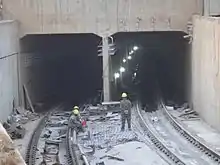 The whole construction was divided into two parts, being phase 1 and 2, which opened in 2013 and 2014, respectively. Phase 1, opened on December 28, 2013, runs through Wuchang in a northeast-southwest direction, connecting Wuhan Railway Station, Wuchang Railway Station and major commercial districts.[3] Phase 2 will run in an east-west direction, linking Hanyang and Wuchang, tunneling through the Yangtze river in the proximity of the first Yangtze river bridge and connecting with phase 1 at Wuchang railway station.[4]