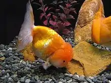 The lionhead is a hooded variety of fancy goldfish. This fish is the precursor to the ranchu.[1]