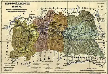 The capitals of the county were the Liptó Castle, later Németlipcse (present-day Partizánska Ľupča), and since 1677 the capital was Liptószentmiklós (present-day Liptovský Mikuláš).
