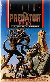 - Aliens vs. Predator: Prey (by Steve Perry and Stephani Perry, Bantam Books, 259 pages, May 1994, ISBN 0-553-56555-9)