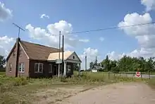 | Bridesville | Old Molson Road | Molson | Old Railroad Road | The town of Molson died a slow death as its mining and farming industries dried up in the 1920s, and the Canadian National Railway abandoned its line at the crossing in 1936.[9] Molson's designation as a port of entry was ultimately revoked in 1941.[10] What once was Molson's Customs and Immigration building still stands as part of the Molson Museums, displaying elements of the ghost town. | ![]() |