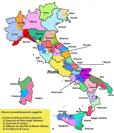 - some (arch)bishoprics under the papal Metropolitan see at Rome, including