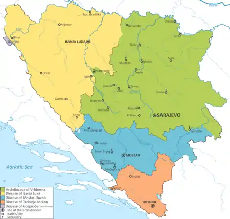 - in Bosnia and Herzegovina: Military Ordinariate of Bosnia and Herzegovina, not vested in any see