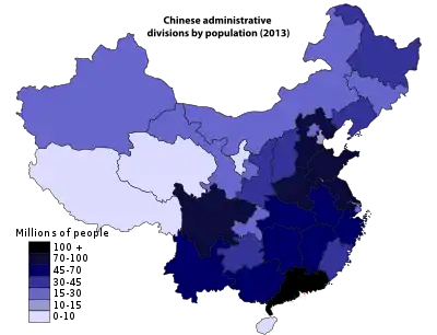PRC-controlled administrative divisions by population (2013).