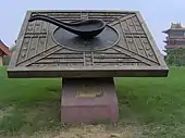Although an ancient hematite artifact from the Olmec era in Mexico dating to roughly 1000 BC indicates the possible use of the lodestone compass long before it was described in China, the Olmecs did not have iron which the Chinese would discover could be magnetised by contact with lodestone.[34] Descriptions of lodestone attracting iron were made in the Guanzi, Master Lu's Spring and Autumn Annals and Huainanzi.[35][36][37] The Chinese by the Han Dynasty (202 BC – 220 AD) began using north-south oriented lodestone ladle-and-bowl shaped compasses for divination and geomancy and not yet for navigation.[38][39][40] The Lunheng, written by Han dynasty writer, scientist, and philosopher Wang Chong (27 – c. 100 AD) stated in chapter 52: "This instrument resembles a spoon and when it is placed on a plate on the ground, the handle points to the south".[41][42] There are, however, another two references under chapter 47 of the same text to the attractive power of a magnet according to Needham (1986),[43] but Li Shu-hua (1954) considers it to be lodestone, and states that there is no explicit mention of a magnet in Lunheng.[33] The Chinese polymath Shen Kuo (1031–1095) of the Song Dynasty (960–1279) was the first to accurately describe both magnetic declination (in discerning true north) and the magnetic needle compass in his Dream Pool Essays of 1088, while the Song dynasty writer Zhu Yu (fl. 12th century) was the first to mention use of the compass specifically for navigation at sea in his book published in 1119.[22][39][44][45][46][47][48] Even before this, however, the Wujing Zongyao military manuscript compiled by 1044 described a thermoremanence compass of heated iron or steel shaped as a fish and placed in a bowl of water which produced a weak magnetic force via remanence and induction; the Wujing Zongyao recorded that it was used as a pathfinder along with the mechanical south-pointing chariot.[49][50]