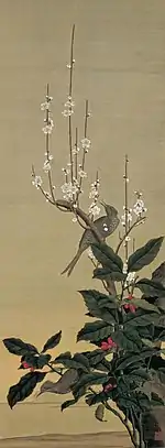 | Bamboo and Java Sparrows, by Satake Shozan 佐竹曙山筆 竹に文鳥図 Satake Shozan hitsu take ni bunchō zu | later C18 | Akita | Akita City (kept at the Akita Senshū Museum of Art) | ![]() | 136.0 centimetres (53.5 in) by 40.0 centimetres (15.7 in) | 39°43′02″N 140°07′28″E | ||