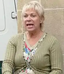Thelma is a pub landlady who comes to The Queen Victoria when they host an event for "East London Lady Publicans". Thelma is already drunk, and flirts with Kush Kazemi (Davood Ghadami).[31] She offers Nancy Carter (Maddy Hill) a job as assistant manager at her pub, the Rat and Ferret, and then leaves with her daughter, Linzi Bragg (Amy-Leigh Hickman).[32] After Nancy has a trial at Thelma's pub, Whitney Dean (Shona McGarty) contacts Thelma and gets her boyfriend and Nancy's brother Lee Carter (Danny-Boy Hatchard) a trial as well. Thelma is impressed by his good looks and agrees to offer him the job.[33] Thelma later collects Linzi from school after Linzi gets into a fight with Louise Mitchell (Tilly Keeper) and is angry with her.[34][35]