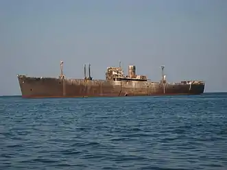 Empire Strength was a 7,355 GRT refrigerated cargo ship that was built by Harland & Wolff Ltd, Belfast in 1942, being launched on 28 May and completed in December. Sold in 1946 to Blue Star Line Ltd and renamed Saxon Star. Sold in 1961 to D L Street Ltd, Cardiff and renamed Redbrook. Sold in 1965 to Hegif Compagnia Navigazione SA and renamed E Evangelia. Operated under the management of H Embiricos, Greece. Ran aground on 15 October 1968 off Constanța, Romania (43°58′N 28°39′E) and declared a constructive total loss. The wreck is now a tourist attraction in Costinești.