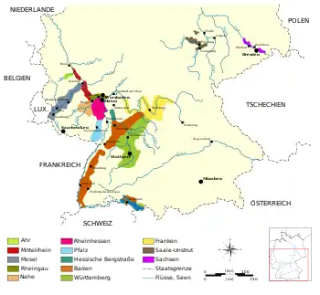 In the Baden there are 9 Bereiche (in bold) and 16 Großlagen.[4][5]