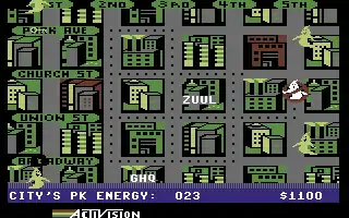 Most versions of the game have a similar basic format to the initial Commodore 64 and Atari 800 game, which Crane wrote in six weeks. He based it in part on an incomplete game called Car Wars featuring armed automobiles in a city; this led, for example, to the "ghost vacuum" on the Ecto-1, something not present in the film. Activision obtained the license early in the film's production, and most of the game was finished by the time Crane watched the film. While pleased with the game, Crane later stated that he regretted not being able to include a better victory screen.[1] The last week of development was spent on the opening screen which plays the Ghostbusters theme song.[2] The game was later ported to the Spectrum, Amstrad CPC, MSX, and Atari 2600.