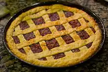 Covered jam-filled shortcrust pastry dish principally made from flour, sugar and egg. |
