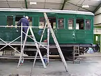 | SR | No.4589 | Bogie General Utility Van | Stored, Under frame only. Under-frame will have body of LCDR Bogie 5-compartment Brake Third No.4115 permanently placed on it, under-frame has been shortened by 5 feet to accommodate this.[24] | N/A | Wight Locomotive Society | 1938 | ~ |